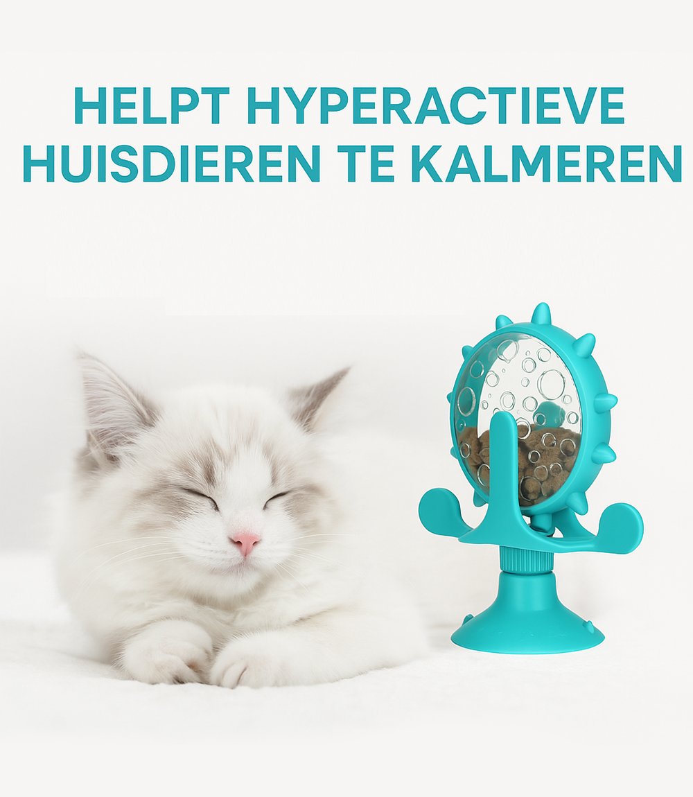 De SnoepSpin helpt drukke of snel overprikkelde huisdieren tot rust te komen. Door het spelenderwijs eten krijgen ze focus en ontspanning, wat stress en verveling vermindert. Een kalme geest begint bij een leuke uitdaging!