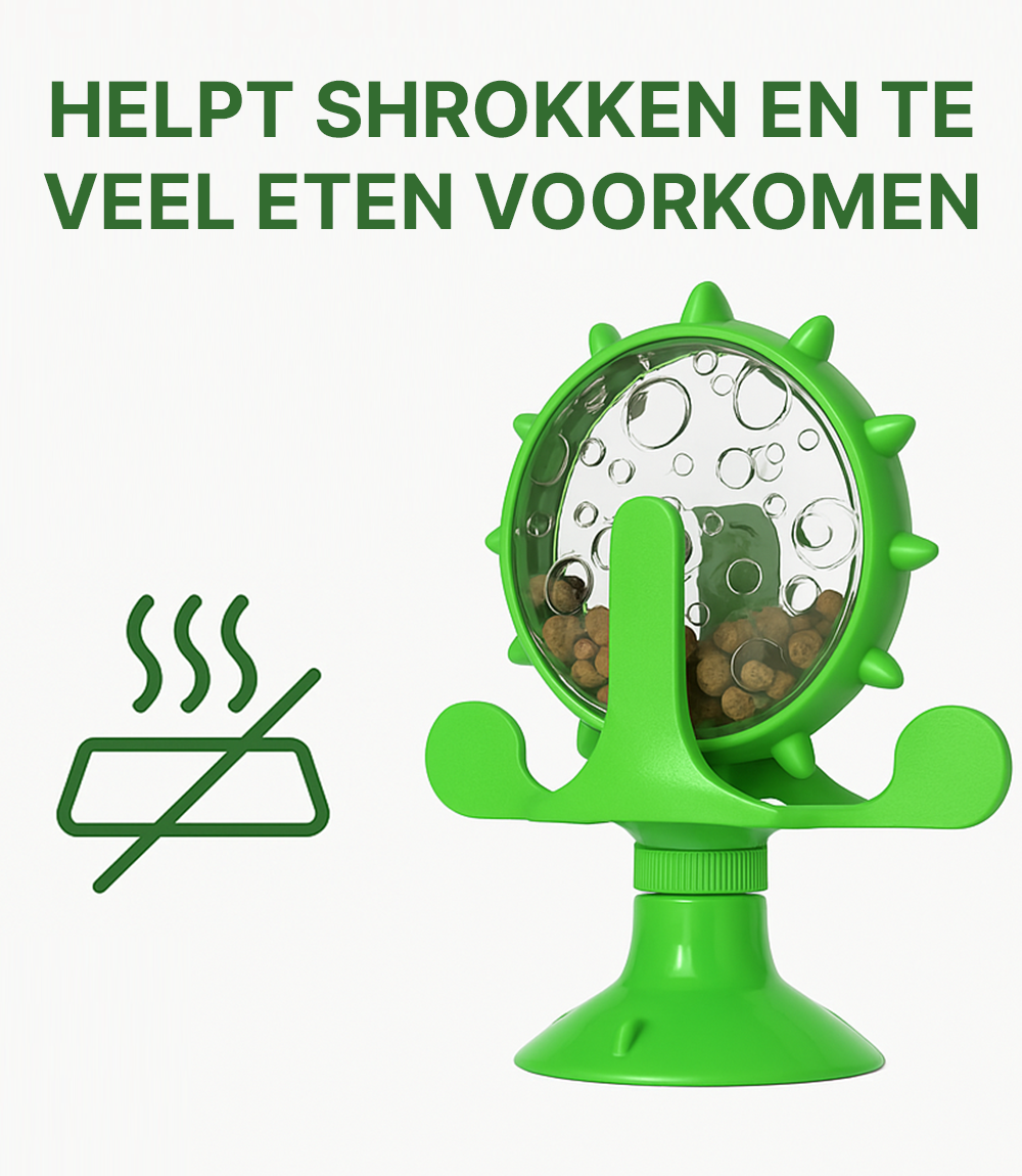 Ja! De SnoepSpin moedigt langzaam eten aan doordat je huisdier moeite moet doen om het eten los te krijgen. Dit voorkomt schrokken, verbetert de spijsvertering en stimuleert het brein tijdens het eten.
