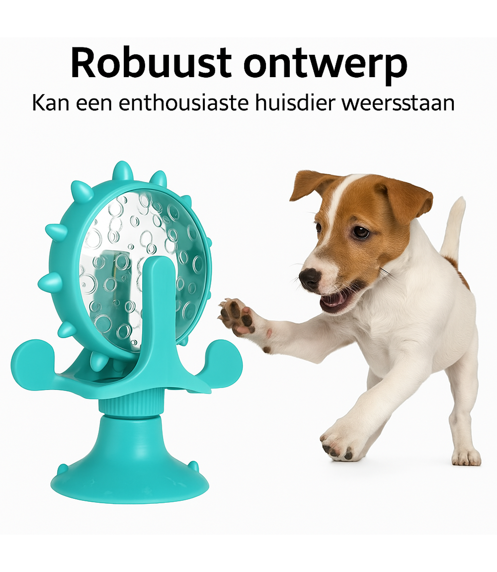De SnoepSpin is stevig gebouwd met duurzame materialen die tegen enthousiast speelgedrag kunnen. Of je huisdier nu bijt, slaat of duwt — dit speeltje blijft sterk en betrouwbaar. Ideaal voor dagelijks gebruik, zonder snel te slijten.